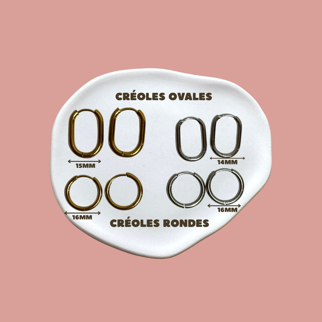 - Dimensions : Créoles rondes 16 mm où créoles ovales 19 mm